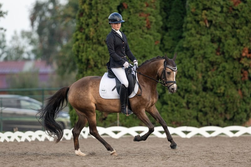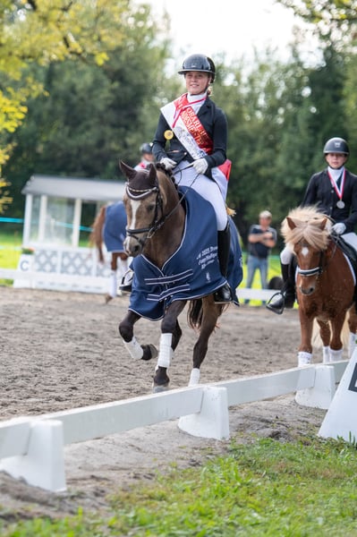 Wir haben uns entschieden unsere erfolgreiche 2020 geborene Reitponystute in Sonderfarbe von Herzkönig NRW zu verkaufen. Chanel de Coco stammt aus unserer Zucht, ist bei uns aufgewachsen und von uns schonend ausgebildet worden. Siegreich in der Dressur der Klasse A und L auch unter Großpferden. Siegreich im Springen und in der Vielseitigkeit der Klasse E unter Großpferden. Dressur Landeschampion 2024 und 2025. Ist eingefahren und zeigt auch hier potenzial für wesentlich mehr! Ein ehrliches Pony das immer alles gibt und mit seinem Reiter durch dick und dünn geht. Nur in fördernde Hände und in ein 5 ⭐ Zuhause zu verkaufen. Da die Stute koppt, wird sie weit unterm Wert verkauft. Beim Probereiten fällt eine Gebühr von 50 Euro an.