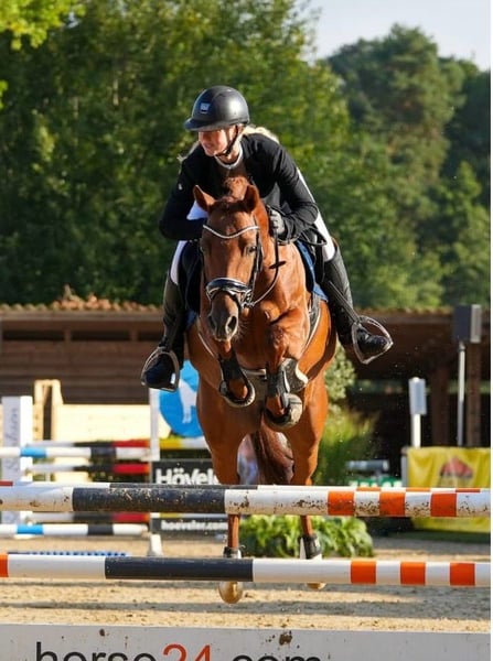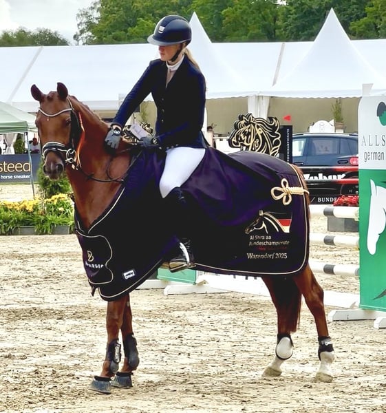 In onze collectie vindt u streng geselecteerde springponys voor alle eisen: opleidings-, fok- en kinderponys. Hier gaat u naar de volledige collectie: https://ponyforum.auction Resultaten: Finaliste op het Bundeschampionat voor vijfjarige springponys, winnaar van de kwalificatiewedstrijd voor het Bundeschampionat in Warendorf 2025, succesvol en geplaatst in springpaardenwedstrijden, geplaatst in springwedstrijden klasse A 90 cm en E 85 cm. Onze topaanbieding voor toegewijde springruiters in parcours en cross: Chucky-P! De vijfjarige merrie won in september tijdens het Bundeschampionat voor vijfjarige springponys de kwalificatiewedstrijd en kwalificeerde zich voor de finale – daarmee behoort ze tot de vijf beste vijfjarige springponys van het land! Chucky-P kwalificeerde zich voor het Bundeschampionat in Olfen, een van de sterkst bezette kwalificaties in Duitsland. Ze liet hier het volledige startveld achter zich en won deze wedstrijd! Chucky-P heeft ook al wedstrijdervaringen opgedaan onder jonge ruiters; ze is een enthousiaste en sportieve merrie. Stilstand is voor haar geen optie, met veel vermogen en moed compenseert ze zelfs zelfverliezen van de ruiter onbaatzuchtig. Ze heeft ook al eerste successen behaald in cross-country wedstrijden; haar uitstekende galop en haar bereidheid tot presteren zijn hier voorbeeldig.