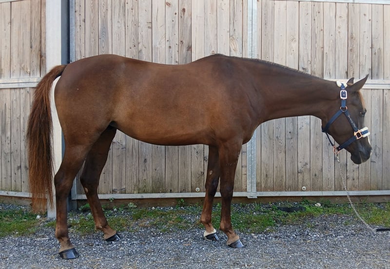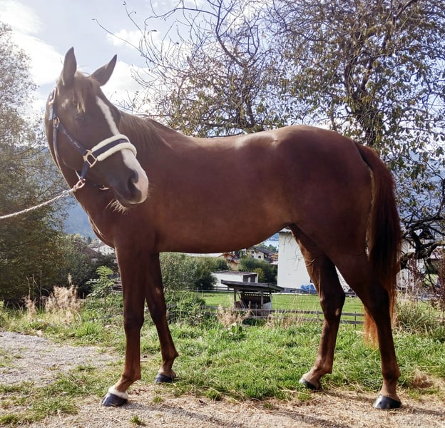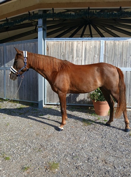 Mickey Mouse aka "Mausi" is an exceptionally loving and talented 4-year-old mare who is ready to give her heart to a new owner! This beautiful, correctly built mare not only impresses with her looks, but also with her wonderful character. She seeks contact with people and is always friendly and well-behaved. Whether farrier or loading - she masters it all with calmness and composure. She is confident, curious and courageous in the field - whether alone or in a group. Should she ever become unsure, she immediately takes her cue from her human and always remains cooperative. Her eagerness to learn and her great potential make her the perfect partner for an ambitious leisure rider who enjoys training her further. She could also present herself well at competitions in the future. This cuddly mare is the ideal companion for someone who wants to grow together with her. She is easy to handle and a real sweetheart - ready for new adventures!