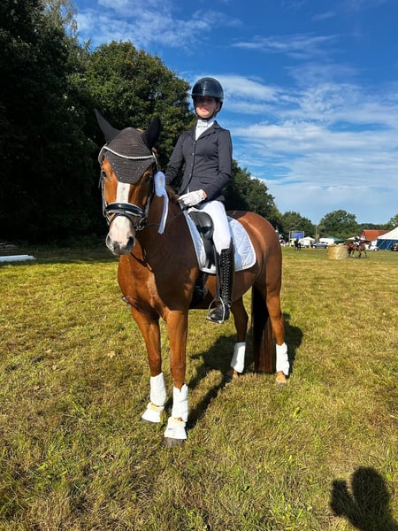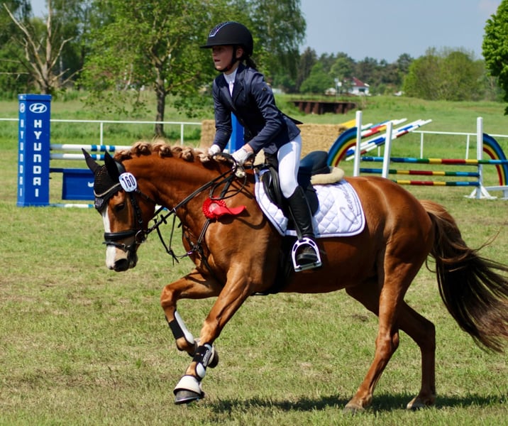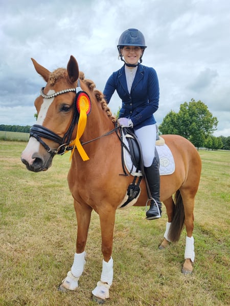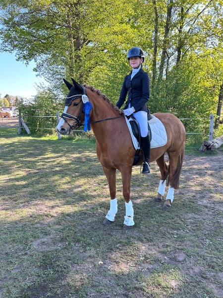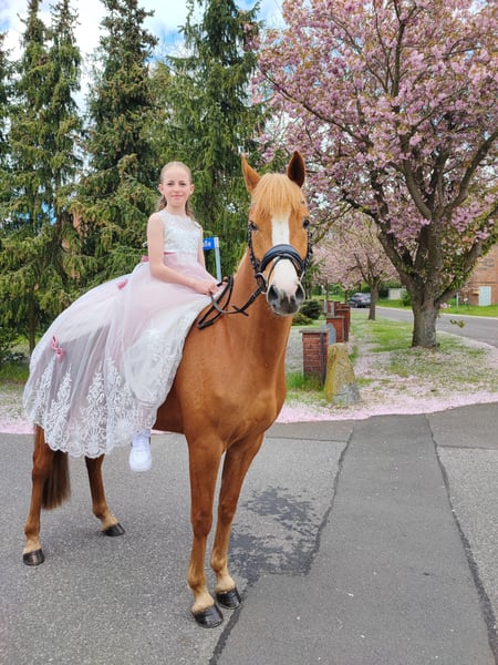 🌟 Darja G – vielseitige Staatsprämienstute mit Herz und Talent Die 2019 geborene Reitponystute Darja G vereint bestes Leistungsblut mit Rittigkeit, Charakter und Vielseitigkeit. Sie stammt ab von Dallmayr K x Marsvogel xx, misst ca. 147 cm und wurde als Staatsprämienstute ausgezeichnet. --- 🏆 Sportliche Erfolge Siegreich in Dressur Kl. A Beherrscht die Lektionen der Klasse L (Schulterherein, Kurzkehrt, einfache Galoppwechsel, Rückwärtsrichten etc.) Platziert in Springprüfung Kl. A Dreijährig, vierjährig und fünfjährig mehrfach erfolgreich im Freispringen Dreijährig und vierjährig mit einem 11-jährigen Mädchen erfolgreich in der Reitpferde- und Dressurpferdeprüfung vorgestellt – absolut brav und kindergeeignet Darja überzeugt im Dressurviereck durch drei gute Grundgangarten, Schwung und Rittigkeit sowie im Parcours durch Übersicht, Vermögen und Mut. --- 🐴 Charakter & Umgang Darja G ist eine ehrliche, feinfühlige und verlässliche Partnerin: unkompliziert in Haltung & Transport sozial im Herdenverband gelassen und absolut geländesicher freundlich und zuverlässig im Umgang Damit ist sie ideal als Nachwuchspony für Kinder und Jugendliche oder als vielseitiges Sport- und Freizeitpony geeignet. --- 🌟 Einsatzgebiete Dressur (aktuell A, bereit für L) Springen (A-platziert) Vielseitigkeit / Gelände Zucht (Staatsprämienstute) Freizeit Ein echtes Multitalent, das durch Qualität, Nervenstärke und einen tollen Charakter überzeugt. Diese charmante Stute überzeugt nicht nur durch ihre ansprechende Farbe, sondern auch durch ihr freundliches Wesen und ihre Lernbereitschaft. Sie ist bereits gut ausgebildet und zeigt viel Potenzial im Dressur- und Springsport. Sie eignet sich sowohl für erfahrene Reiter als auch für ambitionierte Anfänger, die mit ihr gemeinsam weiterarbeiten möchten. Bei Interesse oder für weitere Informationen stehe ich Ihnen gerne zur Verfügung. Besichtigungen sind nach Absprache möglich. Wir freuen uns auf Ihre Nachricht!