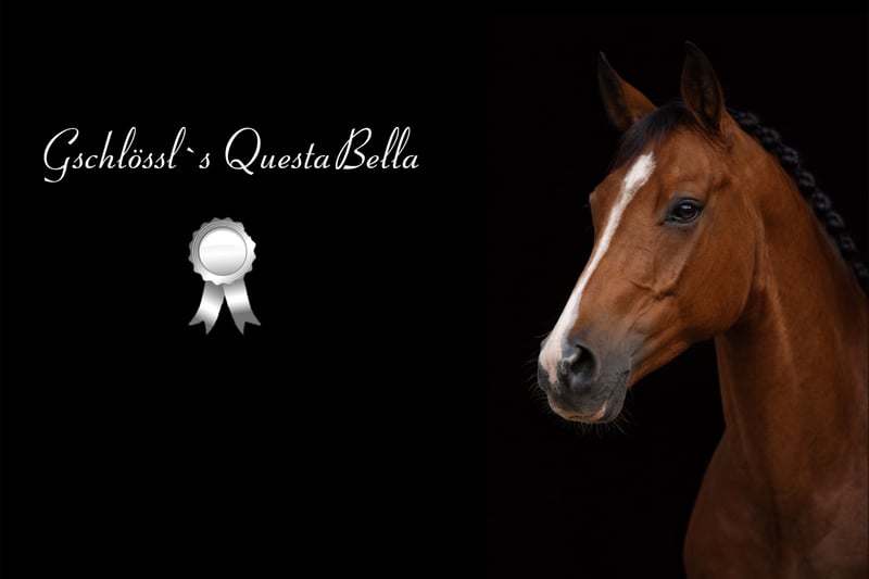 Hermosa y dulce yegua de 5 años, Gschlössl's Questa Bella – amigable, sociable y ya ganadora en salto de obstáculos categoría L Se ofrece una encantadora y muy fácil yegua de 5 años que no solo impresiona por su carácter adorable, sino que también ha obtenido excelentes resultados deportivos. Es muy amable, muy sociable y en el manejo diario se muestra completamente tranquila y con la mente clara. Ya sea cepillando, en la herradura o en el transporte, hace todo con calma y es una verdadera alegría en el día a día. Bajo la silla, es apta para montar, con buen rendimiento y siempre concentrada. En el salto muestra una actitud excelente, mucha visión y suficiente talento para tareas de mayor nivel. Ya ha ganado en salto de obstáculos categoría L y está en camino hacia categoría M, donde también podrá competir sin problemas. Una yegua de cría maravillosa para jinetes ambiciosos que buscan un caballo fiable, motivado y con talento deportivo. Para más información o consultas, no duden en contactarnos.