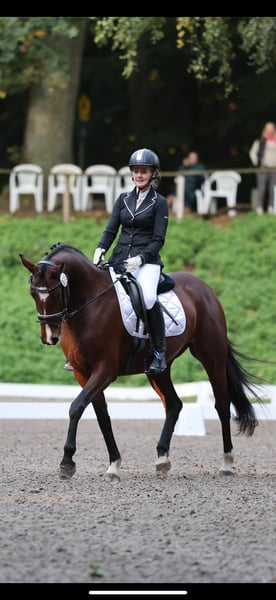 For sale: Elegant and well-trained German Riding Pony mare This graceful and well-trained German Riding Pony mare was foaled in 2020. With her attractive bay coat and a height at the withers of 14.1 hh, she combines typical pony elegance with a solid dressage foundation. The mare is ideally suited for an ambitious leisure rider or an aspiring dressage rider. She demonstrates a pleasant basic gait, is well-schooled, and has a friendly, open-minded temperament. Thanks to her solid training and balanced character, she is a reliable partner for both young riders and experienced horse enthusiasts. She has been regularly worked, shows good collection ability, and is ready to further develop her skills. The mare is healthy, free of known health issues, and has been consistently cared for with proper and attentive management. If interested or for further questions, I am happy to provide information and arrange a viewing. This talented dressage horse is looking forward to a new, loving family that will continue to support her development.