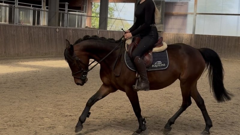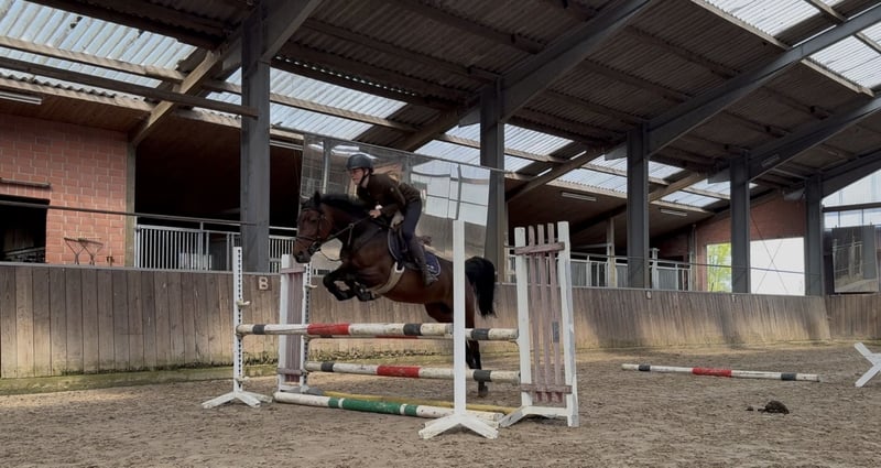 Hedwig is a charming 7-year-old pony mare with a height of 1.43 meters, making her the perfect pony for children seeking a reliable partner. Her balanced temperament and friendly nature delight both in daily handling and under saddle. She is very people-oriented and has no vices. In daily work, she impresses with her rideability. She responds delicately to all aids and is always motivated to learn something new. In the jumping arena, she is ambitious and attentive, yet always manageable. Whether jumping, dressage, or trail riding, Hedwig consistently shows confidence and calmness. She is a true dependable pony that also inspires trust in younger, less experienced riders and beginners. She is familiar with both paddock and box stall housing. She is well compatible with other horses and integrates smoothly into existing herds. A truly wonderful, versatile pony that makes children’s hearts beat faster and can be a loyal companion for shared adventures. If Hedwig has caught your interest, please contact us for more information and videos via WhatsApp at +49 170 3874473.