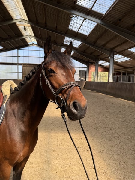 Hedwig ist eine charmante 7-jährige Ponystute mit einem Stockmaß von 1,43 m, was sie zum idealen Pony für Kinder macht, die einen verlässlichen Partner suchen. Mit ihrem ausgeglichenen Wesen und ihrer freundlichen Art begeistert sie im täglichen Umgang ebenso wie unter dem Sattel. Sie ist sehr menschenbezogen und hat keinerlei Unarten. In der täglichen Arbeit überzeugt sie durch ihre Rittigkeit. Sie reagiert fein auf alle Hilfen und ist stets motiviert, etwas Neues zu lernen. Im Parcours ist sie ehrgeizig und aufmerksam, bleibt dabei aber immer händelbar. Egal ob Springen, Dressur oder Gelände Hedwig zeigt sich stets sicher und gelassen. Sie ist ein echtes Verlasspony, das auch jüngeren, unsicheren Reitern und Reitanfängern Vertrauen schenkt. Sie kennt Offenstall sowie Boxenhaltung. Mit anderen Pferden ist sie gut verträglich und fügt sich problemlos in bestehende Herden ein. Ein rundum tolles, vielseitiges Pony, das Kinderherzen höherschlagen lässt und ein treuer Begleiter für gemeinsame Abenteuer sein kann. Wenn Hedwig euer Interesse geweckt hat, meldet euch gerne für weitere Informationen und Videos über WhatsApp unter +49 170 3874473.