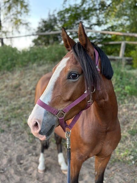 Wegen Umstieg auf ein Großpferd haben wir uns schweren Herzens dazu entschieden, für unsere bildhübsche Ponystute Davinia ein neues Zuhause zu suchen. Sie ist sechs Jahre alt und eingemessen mit 1,44m hat sie die perfekte Größe für ein Kind, Jugendlichen oder kleine Erwachsene. Im Umgang mit Kindern ist sie sehr freundlich. Auch Vierjährige können gefahrlos auf ihr reiten. Beim Ausreiten scheut sie nicht. Sie stammt von Hill’s Damon ab und hat eine elegante Erscheinung, einen freundlichen Charakter und eine hohe Lernbereitschaft. Die Stute hat ein gutes Grundtempo, ist brav im Umgang und in allen drei Gangarten gut zu reiten (mit und ohne Ausbinder) und dabei auf einem soliden E-Niveau. Sie steht momentan in Boxen- und Weidehaltung in einer gemischten Herde aus alten und jungen Pferden, wo sie sich sehr verträglich zeigt. Im Viereck weiß sie sich sicher und schön zu präsentieren. Sie ist lektionssicher und turniererfahren, geht in der Abteilung mit und ohne Ausbinder. Davinia ist absolut gesund, wurde immer turnierkonform durchgeimpft und geht ohne Probleme auf den Hänger und ist brav beim Schmied. Sie ist immer kopfklar, lieb und händelbar. Sie ist jedoch kein Anfängerpony, da sie sehr fein zu reiten ist. Bei weiteren Fragen melden Sie sich gern unter der Rufnummer: 0171-2747326.