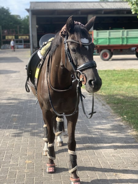 Ausbildungspony mit Zukunft PAV Vinyala ist eine attraktive Stute mit sehr guter Bewegungsqualität und einem starken, dabei ausgesprochen liebenswerten Charakter. Aufgrund eines längeren Auslandsaufenthalts und damit verbundenem Zeitmangel sucht sie ein neues Zuhause. • bald 7 Jahre • Stockmaß: 1,44 m • Barhuf • PAV Blomquist x FS Don’t Worry Vinny ist sensibel, fein an den Hilfen und braucht einen einfühlsamen, konsequenten und fairen Umgang mit Ruhe und ausreichend Zeit. Daher ist sie noch nicht für unerfahrene Reiter geeignet, sondern sucht jemanden, der sie weiter fördert. In den letzten Jahren wurde sie überwiegend vom Boden gearbeitet und ist seit Herbst 2025 in Beritt. Aktuell ist sie gut angeritten, zeigt sich mit viel Go, dabei aber gut händelbar. Die weitere feine Ausbildung dieses Ponys wird sich definitiv lohnen. Sie wird regelmäßig ins Gelände geritten und geht gerne spazieren. Im Umgang ist Vinny absolut verschmust, menschenbezogen und aufmerksam. Sie ist sehr herdenerfahren, sozial kompatibel und kennt sowohl Boxenhaltung mit täglicher Weide als auch Offenstall. Sie ist kerngesund und hat auch keine Einschränkungen in der Fütterung, Allergien oder Ähnliches. Röntgenbilder liegen ohne Befund vor, auch vom Rücken. Vinny wird regelmäßig vom Chiropraktiker, Zahnarzt und Osteopathen betreut. Optional kann das komplette Zubehör mit erworben werden. Weitere Bilder und Videos versende ich gerne bei ernsthaftem Interesse. Standort ist der Raum Bielefeld. Sie wird nur in nachweislich gute Hände abgegeben, keine Händler, kein Schulbetrieb und in eine Haltungsform mit Pferdeverstand und viel Auslauf.
