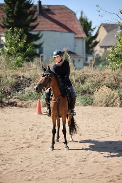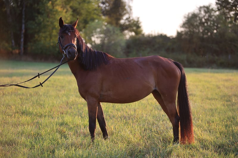 Mondra Mondra ist ein elegantes, leistungsstarkes XXL Pony im Welsh B Typus. Ihr raumgreifendes Exterieur und die Fähigkeit sich zu präsentieren macht sie zu einem guten Turnier- oder Showpony. Die junge Stute ist in A-Dressur und E-Springen, Showreiten, Klassische Reitkunst im Ansatz, Gelände allein und in der Gruppe und in vielen Elementen der Bodenarbeit (Longe, Doppellonge, Equi Working, Freispringen, Agility) ausgebildet. Mondra ist ein leichtrittiges, auf feine Hilfen geschultes Pony das mit viel Herzblut bei der Arbeit ist. Sie liebt das Jagdreiten und Derbyspringen. Für unerschrockene Reiter die mehr Ambitionen haben, ist Mondra ein leistungsstarker Partner fürs Leben gerade für Teenager, kleinere Erwachsene oder für eine leistungsorientierte Famile. Sie ist die Koppel in großen Herden sowie Laufboxen gewohnt. Schmiede- & Verladefromm. Tierarzt gewohnt. Bitte per WhatsApp oder Telegramm melden, damit ich auch aktuelle Videos senden kann. Danke für Ihr Verständnis.
