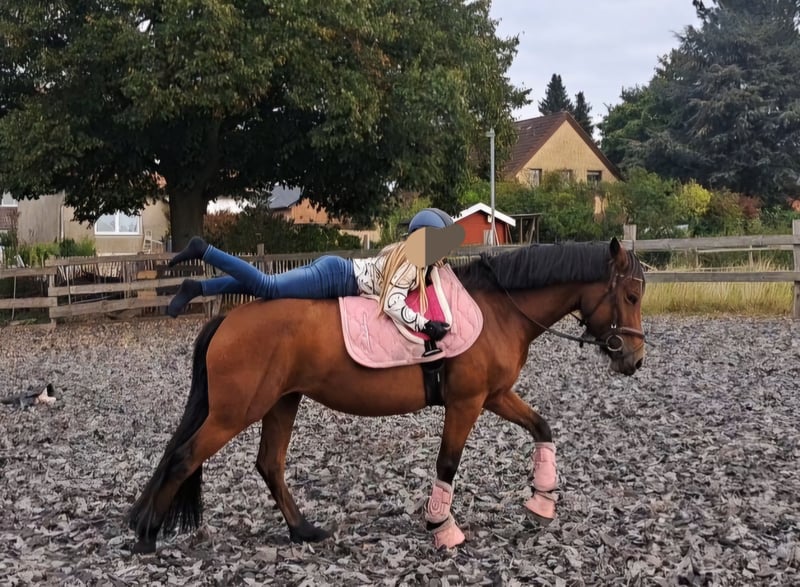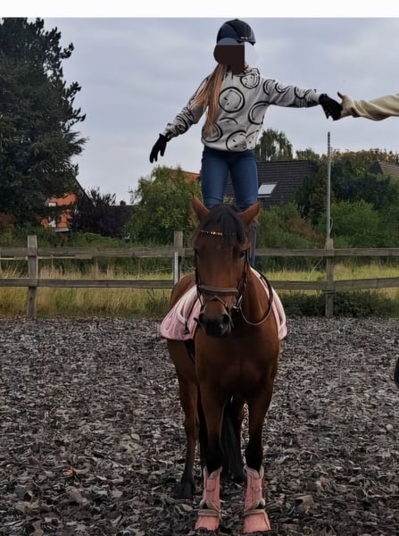 We are selling our beloved Coco, 145cm, 7 years old. My daughter has achieved her first placements and victories in the WBO competitions with her. Coco is an absolutely honest and always sweet pony. We are only letting her go because we want to keep many ponies from our own breeding. You can do seat exercises with her on the lunge. She responds very well to voice commands and does everything for her rider. In the course, she never stops, jumps everything, whether it's cross rails, water jumps, or similar obstacles. She is suitable for both timed and style jumping. We want to provide Coco with a wonderful new home where she will be loved and appreciated. Since she is also very reliable and fearless in the field, I can also imagine her as a great leisure pony. She is always sweet in handling and riding, making her a true friend for the children. Riding with a pad, gymnastic exercises, etc. are possible with her. In the herd, she gets along with everyone. We are happy to send videos via WhatsApp. Best regards.