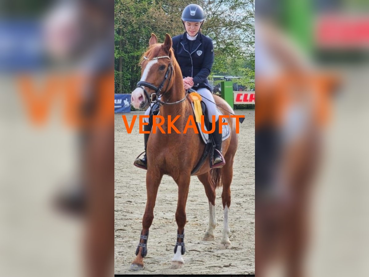 German Riding Pony Totally smart, strong moving and jumping pony! Was an elite foal Dam (state premium and performance mare) was rewarded with a 9.0 in free jumping and placed in elementary level dressage. 5 year old mare Won her first show directly in a test for young show jumpers. Super sweet to be ridden by children. Goes off-road well. Has never been ill. Bought directly from the breeder as a 2-year-old and trained herself. Teeth are freshly made Pedigree: Nancho's Golden Star x Couscous (Champion de Luxe) If you are interested, please contact us or call us directly at 015117923855 (WhatsApp available)
