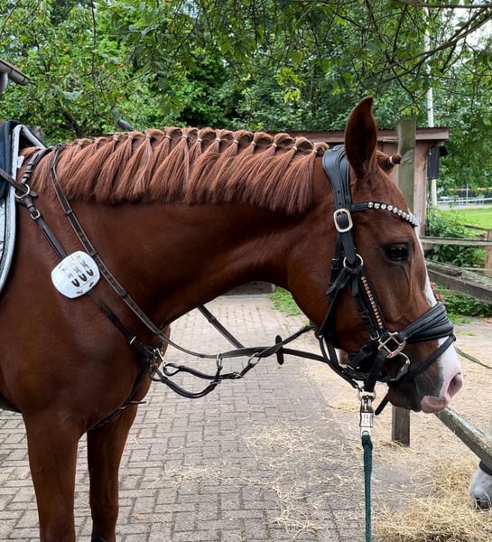 Niemiecki kuc jeździecki Całkowicie inteligentny, silny i skoczny kuc! Był elitarnym źrebakiem Matka (klacz premii państwowej i wyczynowa) została nagrodzona 9.0 w skokach przez przeszkody i uplasowała się na podstawowym poziomie ujeżdżenia. 5-letnia klacz Wygrała swój pierwszy pokaz bezpośrednio w teście dla młodych skoczków. Super słodka do jazdy z dziećmi. Dobrze jeździ w terenie. Nigdy nie chorowała. Kupiona bezpośrednio od hodowcy jako 2-latka i wyszkolona samodzielnie. Zęby są świeżo zrobione Rodowód: Nancho's Golden Star x Couscous (Champion de Luxe) Jeśli jesteś zainteresowany, skontaktuj się z nami lub zadzwoń bezpośrednio na 015117923855 (dostępny WhatsApp)