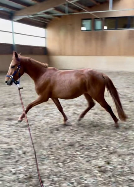 For sale: My riding pony mare as a breeding mare with an outstanding pedigree! Glamour Girl by Golden Grey NRW x Dimension AT, a stylish dark chestnut, was born in 2018 and measures 14.1 hh. She is the half-sister of the 2024 Bundeschampion and 2025 Vice-Bundeschampion "DSP Goldschatz." Her dam, the state premium mare Diva Crema, was a finalist at the 2016 Bundeschampionat. Due to her size, she has only been backed and subsequently used exclusively for breeding. She is very well-behaved and gentle in handling and at the farrier. She has already foaled two foals by FS Next Diamond in 2023 and 2024, both of excellent character and size. Currently, she is not in foal. Regrettably, I must part with her due to herd reduction. She will only be sold to a good home and solely for breeding purposes!