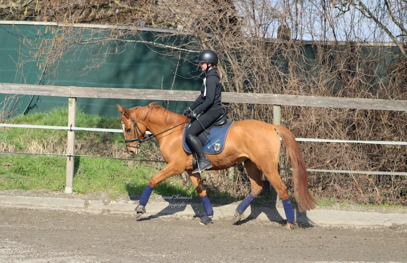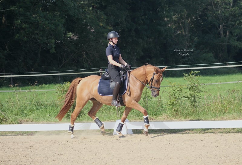 **Advertisement for sale: German Riding Pony - Mare** **Breed:** German Riding Pony **Sex:** Mare **Year of birth:** 2017 **Color:** chestnut **Height:** 147 cm **Discipline:** Dressage We offer a beautiful German Riding Pony mare for sale. This talented chestnut mare, born in 2017, impresses with her elegant appearance and excellent dressage skills. With a height of 147 cm, she is ideal for ambitious riders who are looking for a reliable and powerful partner. If you are interested and would like further information, please do not hesitate to contact us. see www.gestuet-boenniger.de