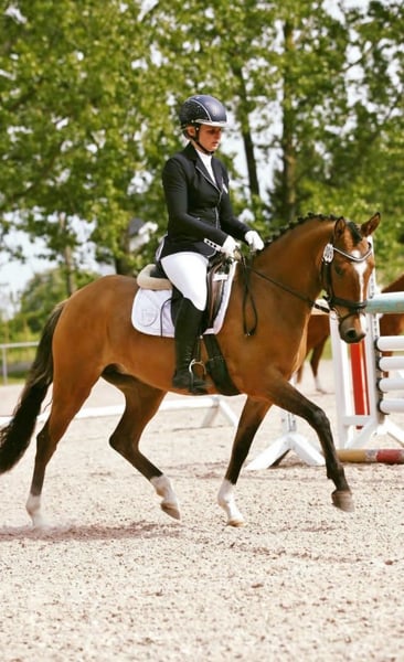 A causa di una riduzione del patrimonio, offriamo la nostra cavalla stallone premiata di stato "Loreley" a persone di fiducia. Loreley è una cavalla di tipo pony con ottime andature di base. Da giovane, a tre anni, è stata la vincitrice della prova di selezione delle puledre con un punteggio eccezionale di 8,25. Nel 2021, Loreley ha ricevuto il titolo di cavalla premiata di stato ed è stata riserve vincitrice delle Pony tedesche da dressage al Campionato delle puledre in Sassonia e Turingia a Wolfersdorf. Prima di iniziare la carriera di riproduzione, Loreley è stata con successo impiegata in prove di equitazione e dressage. Nel 2024, Loreley ha partorito un puledro stallone di tipo, figlio di DJ, che è stato premiato e si è qualificato per il Campionato dei puledri. Loreley combina una genetica di prestazione nel suo pedigree. Da parte del padre, si trovano stalloni di stampo e di prestazione come Dimension AT e FS Don't Worry. I discendenti del suo ceppo materno sono molto affermati nello sport, ad esempio il fratellastro "Notre Petit" ha ottenuto ottimi risultati in competizioni FEI ed è stato campione del sud della Germania nel dressage pony nel 2024. Una sorella half ha raggiunto la finale del Campionato federale di pony multi-disciplinari nel 2025 a Warendorf. Anche il fratellastro materno di Loreley ha partecipato nel 2025 al Campionato federale di pony da tiro a Moritzburg. Attualmente, Loreley si sta riabituando al lavoro sotto la sella. Nel suo approccio si mostra obbediente e volenterosa. Con una formazione e un'ulteriore stimolazione adeguate, le si aprono tutte le strade.