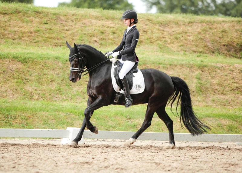 Wegen Ende der Ponyzeit verkaufen wir schweren Herzens unsere 9 jährige, 1,48 m große, Ponystute. Sie stammt vom Top-Vererber Dark Dornik ab und hat somit die perfekten Grundlagen für den FEI Sport. 4 jährig nahm sie mit den Vorbesitzern am Bundeschampionat teil. 5 jährig zog sie bei uns ein und wir haben sie Stück für Stück zum FEI Pony ausgebildet. Sie konnte mit unserer Tochter im Laufe der Jahre viele E Dressuren bis 9,0 und A Dressuren bis 8,5 gewinnen, außerdem konnten die beiden Kreismeister werden. Die beiden erritten viele L Platzierungen, sowie einen Sieg mit 8,2 im vergangenen Jahr. Zudem konnte sie in den vergangenen zwei Jahren in den FEI Sport schnuppern, wodurch sie auch dort bereits einige Platzierungen unter den ersten 4 vorweisen kann. Sie ist auf dem Turnier immer kopfklar, lektionssicher und ist stets ein Hingucker! Auch die Turniersaison 2025 startete erfolgreich immer mit einer Schleife (L* und Dr L), hier sogar auch ein 3. Platz in einer L** auf Kandare. Mitte Juni wurden die beiden 3. Kreismeister auf L-Niveau. Sie ist ein ausgesprochen liebenswertes und charmantes Pony und hat überdurchschnittlich gute Grundgangarten. Außerdem deckt sie gut ab. Wir wünschen uns ein talentiertes Kind, welches bereits sicher in A-Dressuren unterwegs ist und nun den Schritt Richtung L gehen möchte. Eine aktuelle AKU aus April 2025 liegt ohne Beanstandungen (inkl. Rücken) vor. Der Verkauf fällt uns wirklich sehr schwer, daher geben wir sie nur in nachweislich gute und fördernde Hände ab. Im Preis enthalten ist ihr Sattel und die Trense. Wenn Sie also einen sicheren Sportpartner für Ihr Kind suchen, mit dem es sofort durchstarten kann, dann sind Sie mit diesem Pony genau richtig. Telefonische Kontaktaufnahme unter 0175 8279830 gerne ab 13 Uhr. Videos verschicke ich erst nach telefonischer Kontaktaufnahme.