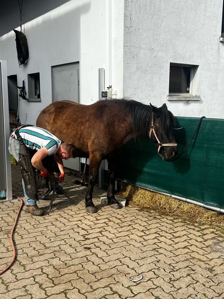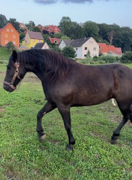 Sunny – liebe Stute für eine Familie, die gemeinsam wachsen möchte. Sunny ist 2017 geboren, ca. 1,55 m groß und befand sich vor meinem Kauf im März 25 seit dem Absetzer im Familienbesitz. Sie kennt also den Alltag, klare Strukturen und einen liebevollen Umgang – genau das, was man sich für ein Familienpferd wünscht. In der Herde ist Sunny ranghoch und souverän, im täglichen Umgang jedoch brav, unkompliziert und verlässlich. Sie läuft barhuf, fährt problemlos Anhänger und ist insgesamt pflegeleicht in der Haltung. Manko:In einer Dauerhaften Boxenhaltung fängt sie an zu husten. In aktueller Haltung aber Symtomfrei!!! Bis zum Frühjahr letzten Jahres durfte Sunny in Ruhe Pferd sein. Sie kennt inzwischen den Sattel und wurde behutsam angeritten (bisher maximal ca. 15-mal). Das Longieren in allen Gangarten klappt ruhig und kontrolliert. Auch die Reithalle kennt sie bereits, dort war sie im Schritt und Trab frei unter dem Reiter unterwegs. Aktuell steht Sunny ohne Reiter, wird aber regelmäßig gearbeitet und zeigt sich dabei zuverlässig und gelassen. Selbstverständlich besitzt sie einen FN-Pferdepass inklusive Eigentumsurkunde. Bitte wichtig für Familien: Sunny ist kein fertig ausgebildetes Kinderpony und kein Pferd für absolute Reitanfänger ohne Unterstützung. Sie eignet sich jedoch sehr gut für eine pferdeerfahrene Familie, die Freude daran hat, gemeinsam weiterzuarbeiten und ein Pferd als langfristiges Familienmitglied aufzubauen. Wer einen ehrlichen Freizeitpartner sucht, der mit Zeit, Geduld und Zuneigung zu einem verlässlichen Begleiter heranwachsen darf, wird in Sunny eine treue Seele finden. Ich gebe Sunny nur ab,da ich mit meinen Pferden in einen eigenen Stall ziehe und ihr hier nicht die Haltung bieten kann, die sie benötigt.Sie würde ihren Sattel ihre 2 Trensen und ihr Halfter mit in ihr neues zu Hause nehmen. Ihr Zubehör ist im Preis mit drin. Bei Interesse gerne melden.