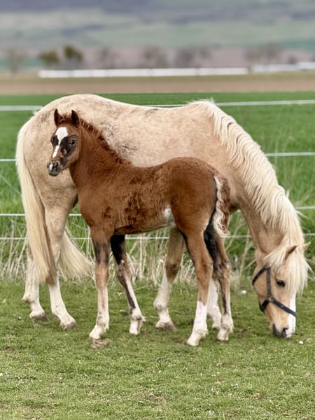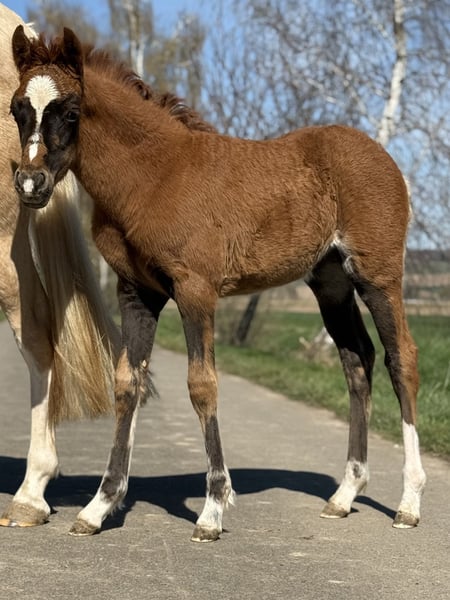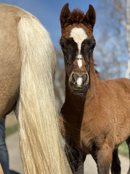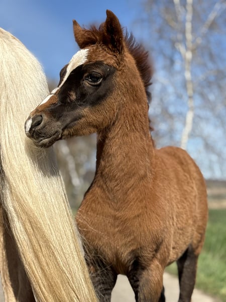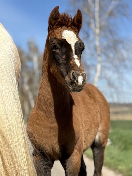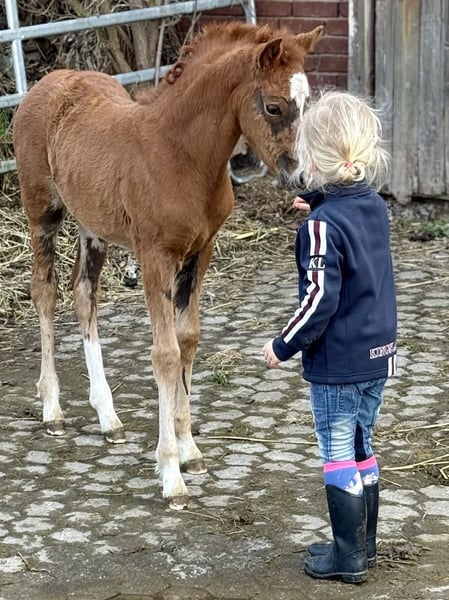 Unser Gänseblümchen zieht uns jeden Tag wieder in Ihren Bann. Sie ist ein keckes, wunderschönes im Hengstyp stehendes Püppchen in einer traumhaften Kohlfuchsfarbe . Ihre Mutter steht ebenfalls aufgrund Bestandsreduzierung und erneut tragend von Golden Grey, zum Verkauf. Die Mutter ist eine Verbandsprämienstute, welche Ihre SLP gewann. Zum Vater muss man glaube ich nichts mehr schreiben, einfach ein Starvererber ! Das kleine Gänseblümchen sucht nun ihr Traumzuhause