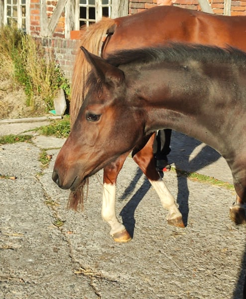 For sale: beautiful riding pony filly born in 03/25. Sire: Der Zauberlehrling Dam: St.Pr.St. by Voyager. The foal knows the basics and has an impeccable character. The mother is an absolutely well-behaved children's pony with competition successes. Our foal will certainly make a great sport pony. Due to the many state premium mares in the pedigree, it is definitely also interesting for breeding. Viewing is worthwhile!
