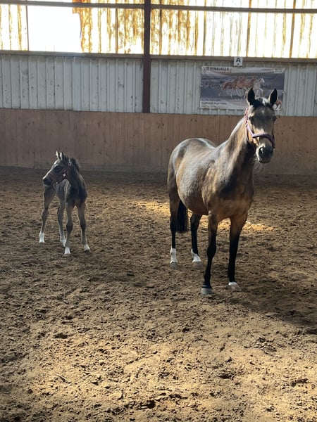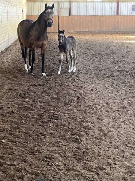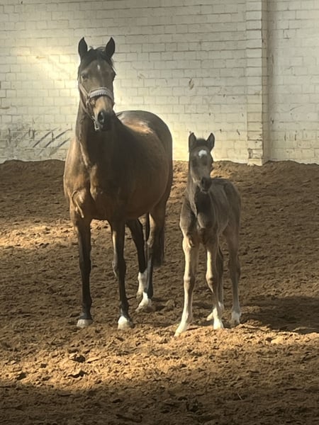 Feenstaup ist im März auf die Welt gekommen und wir waren sofort alle verliebt in die Maus sie verzauberte uns alle hier jeden Tag. Ihr Vater Gold Garant war mehrfach Bundes Championats Sieger der seine reit Qualität und seine überragenden Bewegungen weiter gibt. Franka ihre Mutter ist Staatsprämien Stute die immer super schicke und sportliche Fohlen gemacht hat wie auch wider bei der Maus. Wer also ein Sportliches Pony Fohlen mit einem super Charakter sucht ist bei Feenstaub genau richtig.