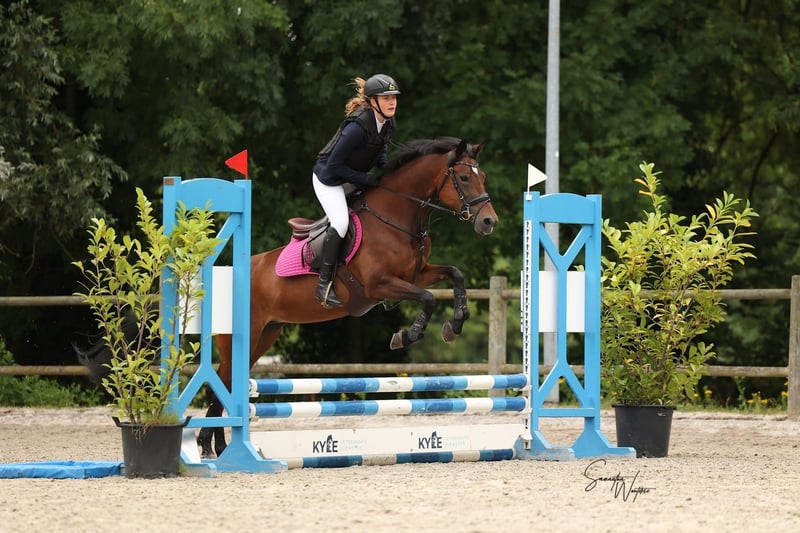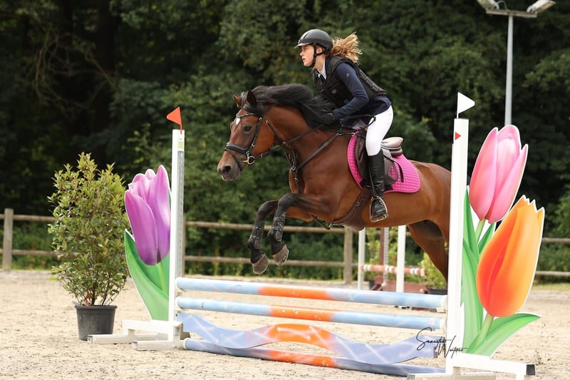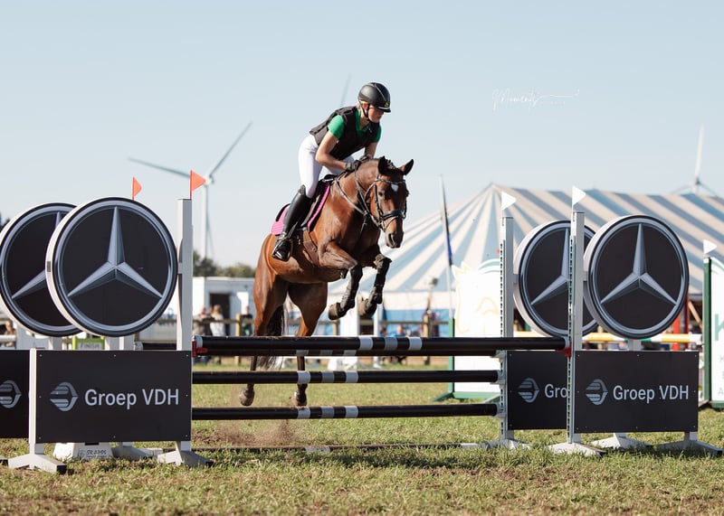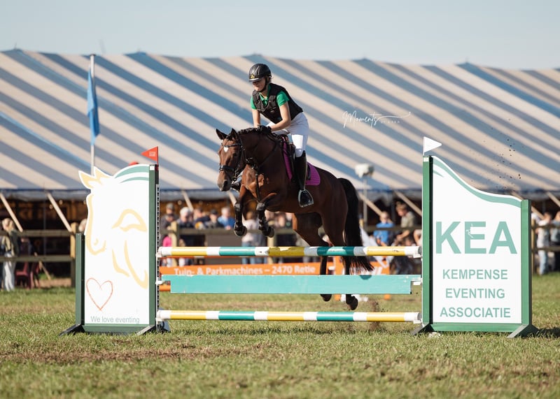 Te koop wegens overstap naar de paarden. D-pony T-Sybelle is een brave voorwaartse pony. Momenteel springt ze op de wedstrijden 90 cm, maar met het oefenen gaat 100 cm ook zeer goed. Dressuur loopt ze DB1 en ook met het viertal loopt ze mee. Ook heeft ze een paar keer de eventing meegedaan en dit vind ze zeer leuk en de waterbak is geen probleem. Samen een buitenritje maken vind ze tof. Bij de dierenarts of hoefsmid is ze altijd flink. Ook het laden op de camion of trailer gaat zonder problemen