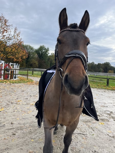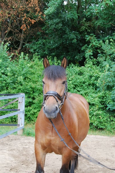 Wunderschönes Kaltblutpony, der gerne Quatsch macht aber motiviert mitarbeitet. Ich habe ihn vierjährig gekauft und selbstständig ausgebildet, er beherrscht einige A Lektionen und zeigt sich stets motiviert neues zu lernen. Bei mir wurde er im Gelände, in der Halle und auf dem Platz geritten. Durch seine Therapieponyausbildung wurde er longiert auch auf Doppellonge absolvierte regelmäßig Bodenarbeit und Gelassenheitstraining. Brav beim Hufschmied unnd verladefromm. Koala hat den typischen Ponysturkopf, ist für Kinder geeignet, jedoch braucht er auch jemanden der sich durchsetzt. Er hat mir viele lustige Momente geschenkt. Leider hat er im Mai die Diagnose Fesselträgerurspungschaden bekommen und steht seitdem auf der Wiese. Der Ultraschall von Mitte Oktober zeigte schon eine Verbesserung, jedoch ist es noch nicht vollständig verheilt. In der Herde zeigt er sich sehr brav und hat sich nach 2 Tagen direkt sehr gut integriert. Bei mir stand er in Boxenhaltung mit täglichem Weidegang, kann auch alleine stehen. Kein Koppen oder Weben, Eisen hatte er nur vorne und er knabbert gerne Dinge an. Da ich mich nun auf mein Studium konzentrieren muss, suche ich für Koala ein tolles neue Zuhause wo er vielleicht einem kleinen Kind noch etwas beibringen kann und viele tolle und lustige Momente schenken kann oder einen neuen Weidepartner findet. Dies ist nur ein kleiner Ausschnitt von Koala, man sollte ihn definitiv im Alltag kennenlernen, um sich einen noch besseren Eindruck von ihm zu machen Pferde sind LEBEWESEN: die hier beschriebenen Eigenschaften beruhen auf den Tatsachen wie sich das Pferd bei mir im Umgang und bei der Arbeit gezeigt hat.