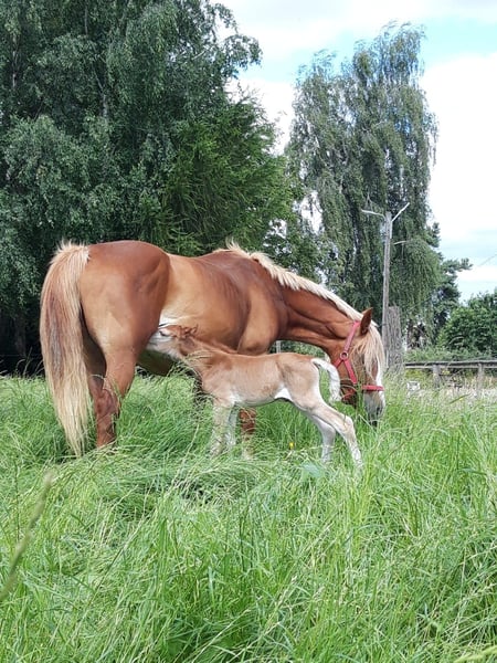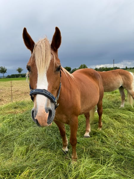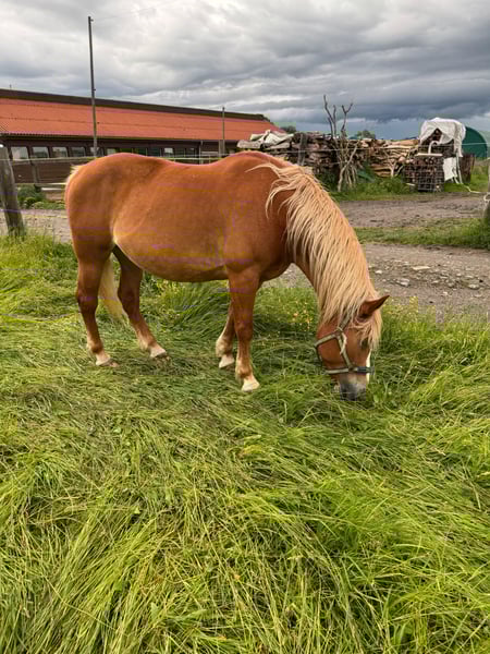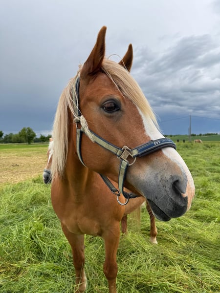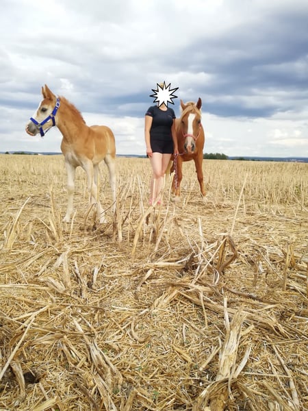 "Aronia" geb. 2014, Fuchsstute. Seit sie bei uns ist (2020) wurde sie regelmäßig Influenza und Tetanus geimpft und 2x jährlich entwurmt. Sie geht barfuß und ist schmiedefromm. Sie war 2x (2021 und 2024) zum Beritt im Reitstall Weber in Reinsdorf bei Zwickau. Bei uns lief sie im Reitunterricht. Im Umgang ist sie selbst von kleinen Kinder gut händelbar. An der Longe zeigt sie sich immer brav, und bringt sogar schon 3jährigen Kindern das 1x1 des Reitens bei. Beim Reiten auf dem Dressurviereck und im Gelände gestaltete sich das Reiten schwieriger. Das liegt allerdings nicht an ihrer Rittigkeit, sondern eher an ihrem zurückhaltendem Wesen. Sie ist rangniedrig und ängstlich anderen Pferden gegenüber. Wenn sie allein auf dem Platz ist, läuft sie problemlos in allen drei Gangarten. Daher möchte ich sie gern in Privathand verkaufen, wo sie, wenn möglich, höchstens noch 2 andere Pferde um sich hat. 2020 hatte sie schon einmal ein Fohlen. Sie ist eine sehr liebevolle Mutterstute und hat das Fohlen ganz allein auf der Koppel zur Welt gebracht. Der Umgang mit ihr und dem Fohlen war stets völlig problemlos, so das sie auch als Zuchtstute gut geeignet wäre. Das Stutfohlen, welches sie damals zur Welt brachte, hat einen wunderbaren Charakter und ist sehr gut händelbar. In kleiner Gruppe ist Geländereiten kein Problem, es darf ihr nur keiner zu nahe kommen. Dann wird sie unsicher und versucht auszubrechen. Ansonsten geht sie brav alle drei Gangarten, ist nicht faul und auch nicht ängstlich. Sie kennt Straßenverkehr, Traktoren und auch Hund in Begleitung. Wenn sie einen Reiter hat, an den sie sich gewöhnen kann, dann ist sie wunderbar zu reiten. Leider ist das im Schulbetrieb nicht möglich , daher ist sie hier nicht glücklich.