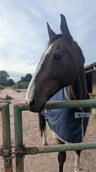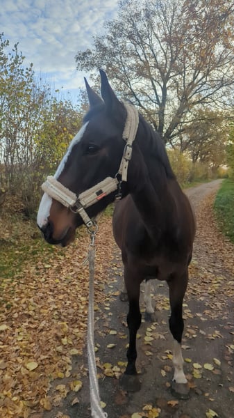 Diese Zeilen zu schreiben fällt mir sehr schwer. Ich weiß auch gar nicht so recht wo ich anfangen soll. Dafnia ist eine polnische warmblut stute 2009 geboren und seit 2015 in meinem Besitz. Sie ist eine sehr liebe im Umgang tolles Pferd. Sie kann man überall anfassen, lässt sich oft ohne Sedierung behandeln und ist einfach im Umgang ein goldschatz. Was das Reiten betrifft, haben wir viel gemacht. Ich habe sie damals direkt vom Züchter gekauft. Dort ging sie Vielseitigkeit. Ich bin mit ihr springen gegangen. Inzwischen ist sie in einem Alter, wo sie nicht mehr springt. Sie hat auch vorne Arthrose. Röntgenbilder sind vorhanden. Sie hatte noch nie die besten Hufe kaum trachte und braucht daher vorne auf jeden Fall Eisen, je nach bodenbelag auch hinten. Sie liebt es entspannte Ausritte zu machen im Gelände. Auf dem Platz hat sie keine Lust mehr. Bodenarbeit ja aber reiten nicht wirklich. Im Gelände ist sie sicher. Natürlich ist es ein Pferd. Das kann sich immer erschrecken, aber ich habe mit ihr immer wunderschöne Ausritte gehabt. Egal, was kam ob es Rehe waren Trecker oder sonst irgendwas.Sie ist definitiv ein ein Mann Pferd. Sie hatte vor zwei Jahren eine schleimbeutelentzündung im Huf. Danach ein hufgeschwür, was sich sehr lange zog. Seitdem sind wir im aktiven reiten raus. Sie ist in der Zwischenzeit auch umgezogen von boxenhaltung in offenstall Haltung, weil sie morgens immer dicke Beine hatte in der Box. Dadurch muss sie in den offenstall. Seitdem ist sie wieder viel mobiler und die angeschwollenen Beine sind auch weg. Sie ist jedoch dort kurz nach Einzug gestürzt vermuten wir. War nachts, morgens Hatte sie dickes Bein Abschürfungen und der sitzbeinhöcker war angeschwollen. Tierärztlich behandelt wurde sie. Hat aber keine weiteren Folge Beschwerden. Die Osteopathie Physiotherapie war auch da. Das ist nun 1 jahr her .Sie ist eine ranghohe Stute jetzt in der Herde ist der Boss, aber immer fair. Was das Reiten angeht, braucht sie vertrauen. Ich habe es oft probiert mit reitbeteiligungen, was nie funktioniert hat. Sie und ich harmonierten, aber ich habe sie natürlich auch schon eine gewisse Zeit. Wenn ich jetzt hinfahre und sie stand zwei Monate, kann ich mich raufsetzen und einfach ins Gelände gehen. Sie abzugeben. Bricht mir das Herz, aber es ist einfach nicht mehr möglich, sie zu halten. Ich wünsche mir ein Zuhause für sie, wo sie hauptsächlich beisteller ist, aber auch gerne mal mit ins Gelände genommen wird, als Handpferd oder leicht geritten wird. Große Sachen viel reiten. Das ist bei ihr nicht mit drin. Das muss man ganz klar sagen und auch ehrlich sein. Dieses Pferd ist ein tolles Pferd, aber hauptsächlich zum betüddeln und ab und zu mal rausgehen. Sie kennt Kinder ist damit so toll und Hunde. Alles kennt sie. Wer sich für sie interessiert, muss sich im Klaren sein, dass es kein Pferd ist zum täglichen Reiten. Sie ist auch leicht überbaut, dadurch vieles schon immer schwer Unterzufußen aber wir haben es ganz gut hinbekommen. Sie ist Schmiede und verlade fromm. Bitte nur ernst. Gemeinte Interessen sollte wieder im offenstall gehen, immer Heu haben und das es okay ist dass sie Rang hoch ist. Sie wird nur abgeben wenn alles zu 100% passt Sie wird mit allem was sie hat abgegeben Decken usw. Und nochmal dieses Pferd ist Top aber hat ihre Baustellen!! Nur ernstgemeinte Interessen und oder ich nehme sie ohne Sachen oder so ein ganzen Kram nein danke! Bei Fragen gern schreiben 🙂