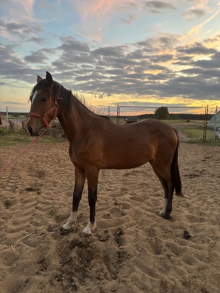 Z ogromną przyjemnością oferuję na sprzedaż klacz o imieniu Arizona S – piękną, elegancką i pełną energii klacz z dużym potencjałem! 📍 Informacje podstawowe: • Imię: Arizona • Rasa: p.k.w ( polski kuc wierzchowy) • Wiek: półtora roku • Maść: Gniada 🧠 Charakter i użytkowość: Arizona S to klacz o zrównoważonym temperamencie, inteligentna, chętna do pracy z człowiekiem. Super koń z cudownym sercem. Jej uroda skrada nie jedno spojrzenie. 🏇 Ruch i predyspozycje: Prezentuje bardzo ładny, elastyczny ruch – dynamiczny galop, efektowny kłus oraz dobry takt i naturalną równowagę. Posiada predyspozycje sportowe oraz ujeżdżeniowe. 📸 Zdjęcie wykonane na świeżym powietrzu pokazuje Arizonę S w ruchu – dynamiczną, zdrową i w doskonałej kondycji. 🩺 Stan zdrowia: • Regularnie werkowana i odrobaczana • Zdrowa, bez kontuzji • Bez narów oraz wad