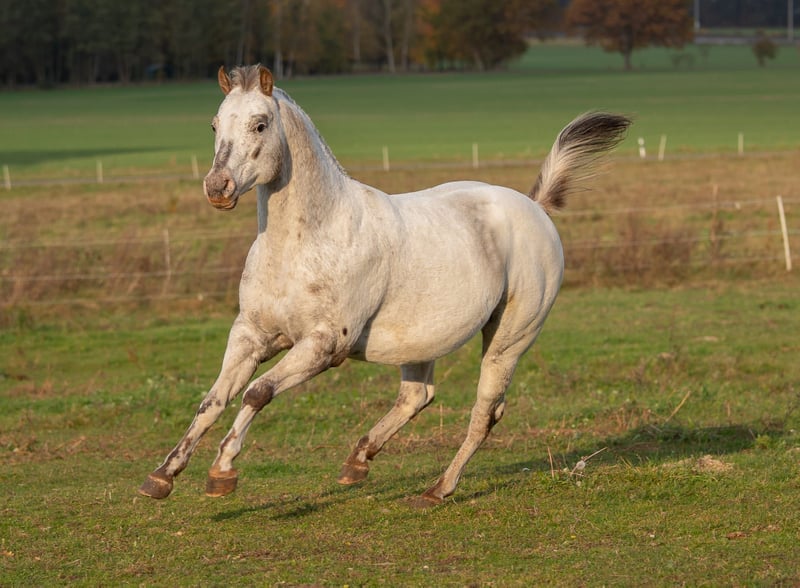 Omdat wij in het bezit zijn van opgroeiende jonge hengsten, staat deze prachtige kerel te koop! Hoewel het ons zwaar valt, zoekt hij een nieuwe omgeving waarin hij zijn werk als dekhengst kan voortzetten. "**Sonnyside**" is een hengst geboren in 2005, een POA (Pony of the Americas) hengst, en er is in Duitsland waarschijnlijk geen ander die zo bekend is! Hij werd in de Verenigde Staten geboren bij de familie Sosinski, wiens fokkerij vele top hengsten en merries voortbrengt. In 2008 is hij naar Duitsland geïmporteerd. "**Sonnyside**" is een homozygote kleurvererver en draagt vele belangrijke POA-verervers in zijn stamboom. Hij vererft zijn prachtige bouw en zijn rustige karakter. Amerikaanse fokkers zeggen over hem: "Dit is de mooiste POA hengst die ik ooit heb gezien. De kleine hengst heeft niet alleen een perfect gebouwd lichaam, maar is ook een uitzonderlijk bewegingspaard." Sonnyside bevindt zich sinds mei 2017 in ons bezit en wij kennen hem als een uiterst vriendelijke en relaxte hengst! Deze bijzondere hengst vererft zijn krachtige bouw, zijn zeer vriendelijke karakter en zijn absolute rust. Sonny kan probleemloos samen met merries en veulens in een groep worden gehouden! Hij gedraagt zich zeer sociaal en respectvol en speelt graag en enthousiast met de veulens. Daarnaast is hij gezond en beschikt hij uiteraard over alle papieren!
