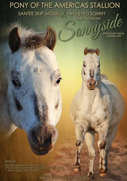 Da wir im Besitz heranwachsender Nachwuchshengste sind,steht dieser wunderschöne Kerl zum Verkauf! Auch wenn es uns nicht leicht fällt, aber um ihn weiterhin seinen Job als Deckhengst bieten zu können, sucht er einen neuen Wirkungskreis! " Sonnyside " ist ein 2005 geborener POA Hengst und es gibt in Deutschland wohl keinen 2. der so in aller Munde ist! Er wurde in den USA bei Familie Sosinski geboren aus deren Zucht viele spitzen Hengste und Stuten stammen, 2008 wurde er nach Deutschland importiert!" " Sonnyside " ist ein homozygoter Farbvererber und trägt viele bedeutende POA Vererber in seinem Stammbaum und vererbt sein tolles Gebäude und seinen sanften Charakter. Amerikanische Züchter sagen über ihn: "Dies ist der schönste POA Hengst den ich je gesehen habe. Der kleine Hengst hat nicht nur ein perfektes Gebäude , er ist auch in seiner Bewegung ein Ausnahmepferd."" Sonnyside " befindet sich seit Mai 2017 in unserem Besitz und wir haben ihn als einen extrem freundlichen und coolen Hengst! Dieser kleine Ausnahmehengst vererbt sein kräftiges Gebäude, seinen absolut liebenswerten Charakter gepaart mit absoluter Coolness! Sonny kann problemlos mit Stuten und Fohlen in der Gruppe gehalten werden! Er benimmt sich sehr sozial und rücksichtsvoll und spielt unglaublich gern mit den Fohlen! Weiterhin ist er gesund und besitz natürlich volle Papiere!