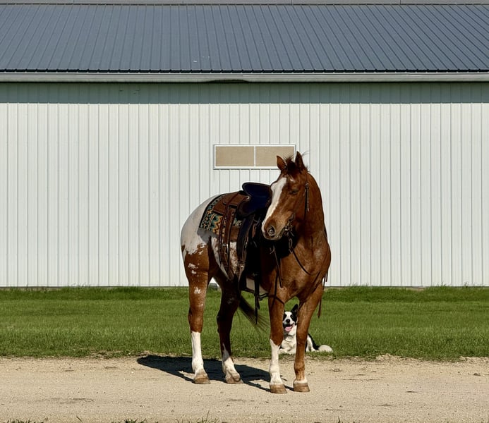 ▪️▫️◾️𝐭𝐡𝐞 𝑴𝒂𝒚 𝐒𝐞𝐥𝐞𝐜𝐭◾️▫️▪️ Happening now thru MONDAY | MAY 4th - Available EXCLUSIVELY on HorseBid's website! For more details and to register visit: www.Horsebid.com CONSIGNOR CONTACT: GM Horse Co 320-339-1458 LOCATION: Cannon Falls, MN BREED: POAC REGISTERED: Yes REGISTERED NAME: Ima Coosanova Admiral COLOR: Sorrel Snowcap Blanket HEIGHT: 14 AGE: 10 GENDER: Gelding General is a 10-year-old registered POAC Appaloosa gelding standing 14 hh. If you’re looking for a pony the whole family can enjoy, General checks every box. He’s the kind everyone wants—safe, gentle, and dependable. General is great on the trails, solid in the arena, easy to catch, and a pleasure to be around. With his eye-catching Appaloosa color and chrome, he’s sure to turn heads wherever you take him. General has excellent manners both on the ground and under saddle. He’s safe around kids, dogs, and all types of livestock. He stands quietly for grooming, bathing, and the farrier. In the arena, General has a nice slow walk, smooth trot, and an easy, cute lope. He picks up both leads, neck reins well, spins both directions, is soft in the bridle, and has a solid stop. He’s also been exposed to plenty of fun—he’s comfortable with a rope, has been used on the dummy, and doesn’t mind activity around him. Out on the trail is where General really shines. He’s been on overnight camping trips, ties well on a high line, and hauls great. He’s a “more whoa than go” type, making him a confidence builder for riders of all levels. He’ll cross anything you point him at—water, downfall, steep terrain, railroad tracks—you name it. Traffic safe and accustomed to heavy machinery, nothing seems to bother this gelding. Ride him day or night with confidence. If you’re searching for a reliable, family-friendly horse to enjoy all summer long, General is the one. Up to date on all vet and farrier care. Location - Cannon Falls, Mn Gabriel Murphy 320-339-1458