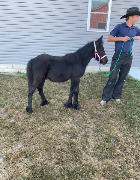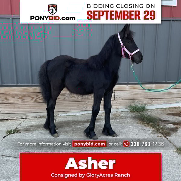 🐴 𝒕𝒉𝒆 𝐅𝐀𝐋𝐋 ℙ𝕆ℕ𝕐 𝑺𝒑𝒆𝒄𝒕𝒂𝒄𝒖𝒍𝒂𝒓🐴 Happening now thru MONDAY | SEPTEMBER 29th - Available EXCLUSIVELY on Ponybid's website! For more details and to register visit: www.Ponybid.com CONSIGNOR CONTACT: GloryAcres Ranch 330-763-1436 LOCATION: Wooster OH BREED: Fell Pony REGISTERED: Yes REGISTERED NAME: GloryAcres Asher COLOR: Black HEIGHT: 10.1 AGE: Weanling GENDER: Colt Asher is a very sweet and intelligent Fell Pony stud colt he shows a lot of his moms traits very calm and gentle he was an orphaned foal has been on solid food and hay for a month now and been doing really good has been dewormed a couple of times is socialized with other fools.
