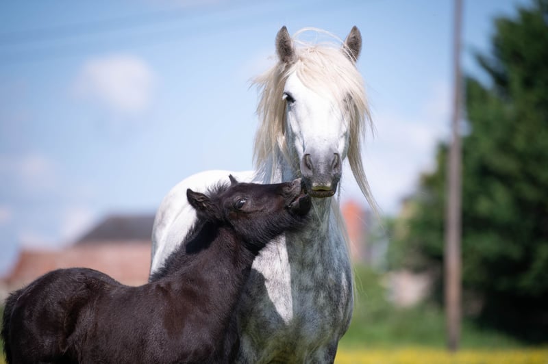 FOR RESERVATION The Haras du Berry is pleased to present Silver and Phrost! Name: Storkdale Eywa (Silver) Gender: Female Date of Birth: 23/04/2019 Sire: Goodshapes Inferno (Fell Pony) Dam: Goodshapes Maid of the Mi (Fell Pony) Maternal Grandsire: Goodshapes Ice Mist (Fell Pony) Height: 1.40m Price: €6500 excl. VAT with her baby Phrost Name: Frenchberrys Phrost Gender: Male Date of Birth: 25/04/2025 Sire: Swallowflight Farrell (NLD Fell Pony) Dam: Storkdale Eywa Maternal Grandsire: Goodshapes Inferno (Fell Pony) Estimated Adult Height: 1.40m We nicknamed her Silver in reference to her beautiful silver-colored coat, but her official name is Eywa. A pony with perfect proportions, kind and easy to handle, she was backed at 4 years old and needs to be gently brought back to work, as she is still green. With her natural elegance and sweet character, she promises to become a great family or leisure pony. On his side, Phrost, a registered colt, is peaceful and a real cuddle bug, always close to humans. Even though his name suggests coldness, Phrost is anything but icy: he is a true soft heart, always near people. Calm and gentle, he enjoys company and is easy to approach. For more information, please contact us preferably by SMS, call, WhatsApp, or email. We do not respond to messages on social media to be able to reply to you more quickly and clearly given the numerous inquiries...