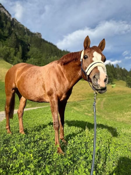 Royale sucht ein neues, liebevolles Zuhause! Royale ist ein sehr süßer 18-jähriger Pony, 147 cm groß, den wir aus Gründen der Untätigkeit in die Obhut von jemandem geben möchten, der sich respektvoll und liebevoll um sie kümmern kann. Das Wichtigste für uns ist, dass sie sich wohlfühlt: Wir suchen eine Person (oder eine Familie), die bereit ist, ihr Zeit und Aufmerksamkeit zu schenken und die ihre sanfte Natur zu schätzen weiß. Sie ist ein erfahrenes Pony, zuverlässig in der Dressurarbeit und auch für kleine Sprünge geeignet. Sie benötigt eine schrittweise Wiedereingliederung in die Arbeit, aber mit Ruhe und Beständigkeit kann sie noch viel geben und neue junge Reiter glücklich machen. Wir wünschen uns für sie eine ruhige Umgebung, in der sie sich geliebt fühlen kann und niemals überfordert wird.