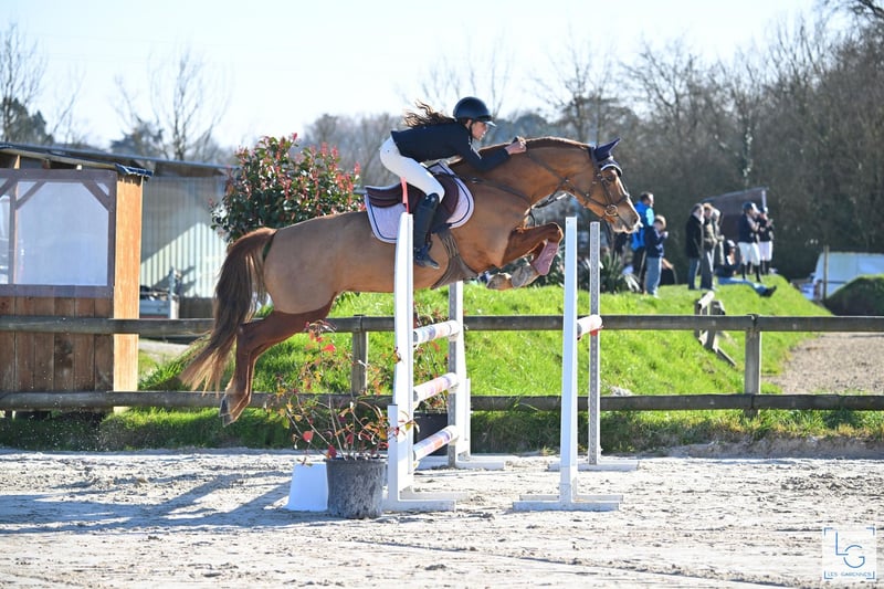 A promising pony ready to compete in prestigious events! French Saddle Pony – 8-year-old mare, standing at 147 cm. Sire: Royal Aronn du Vassal and Valaïa des Cosses (by Melvin Candy and Kitty de Grange). Height: 147 cm. She carries the genetics of the fantastic Alia des Cosses, as they share the same sire, and Valaïa is Alia’s uterine sister. Truly dream pedigree papers! 🤩 Currently competing in AS2 – AS 2+5 classes, with numerous placings achieved by a 12-year-old rider. Qualified and ranked in Future Elite for 7-year-olds. A charming and pleasant pony to handle daily, very gentle, sociable, affectionate, travels well, and is comfortable alone or with company on hacks. She is curious but attentive and doesn’t spook at anything. Equally well-trained on the flat and over fences, which gives her a real ease in her work.
