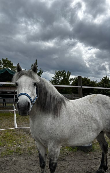 The beautiful eight-year-old Spanish pony mare Mariposa (approximately 140 cm tall) – affectionately called Marie by us – found her way to us in the horse shelter in the spring after her partner horse passed away. Upon her arrival, Marie was significantly overweight and was suffering from an extremely painful bout of laminitis. In the horse shelter, her feeding plan was adjusted, she received targeted pain therapy, and a specialized shoeing. Thanks to these measures, Marie is doing really well today – she is fit, lively, full of joy for life, and ready for the adventure of living! The delightful mare is very open, friendly, and has – typical for ponies – a good dose of cheeky charm. Marie is an absolute rough diamond and is looking for a horse-experienced, sensitive person by her side who will attend to her needs, guide her through life with loving consistency, and continue her training and development. She is familiar with working with a saddle and bridle on the lunge, loves to excel in groundwork, and enjoys exploring the area while out for walks. The mare wishes for people by her side who are well-versed in laminitis and have a farrier on hand who specializes in this condition. Marie will remain prone to laminitis, and therefore, special care is required when choosing her feed, flooring, and exercise. Otherwise, the pretty pony mare enjoys excellent health. She is fully vaccinated, microchipped, and dewormed. In the herd, she gets along well with both mares and geldings. Marie is preferably placed in an active stable; however, an open stable system or a night box with daily turnout is also conceivable.