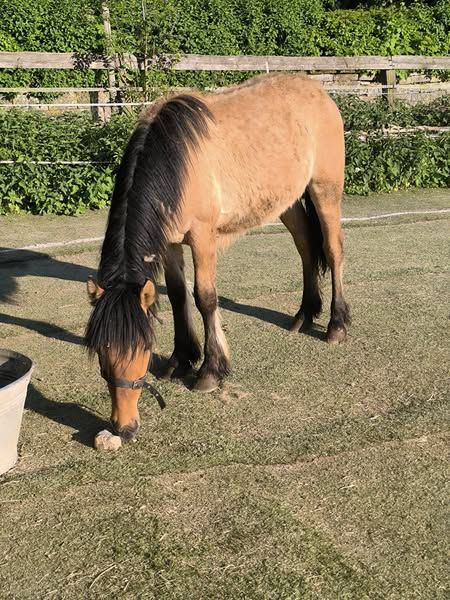 M: Alanis de Lehermet par Zara of Croila V: Balmoral Mroven (Élevage Balmoral de la Reine), Jaune-Bai Dun Je vends un poulain de grande taille avec une estimation de taille entre 1,46 m et 1,48 m, plutôt un peu plus dans la magnifique couleur Jaune-Bai Dun. Les descendants de cette lignée sont très puissants en mouvement. La vente est également possible contre prise en charge des frais en tant que hongre. Une entreprise de transport peut être recommandée. Éventuellement, une pouliche Jaune-Bai Dun pourrait également être proposée. M: Artemis de Lhermet (par Balmoral Mroven) V: Valeron Ben Bracken Grande et robuste descendance du légendaire Balmoral Mroven de l'élevage de la Reine Élisabeth II, Écurie Balmoral. Pour plus d'informations, n'hésitez pas à appeler au 0173/ 9 312 312. Quel est le caractère d'un poney Highland ou qu'est-ce qui les rend si spéciaux ? Les poneys Highland ont un tempérament plus calme que d'autres races. En fait, ces poneys, grâce à leur vision binoculaire supérieure, sont pratiquement "sans peur". Un facteur de sécurité non négligeable. Les poneys Highland sont extrêmement alertes et intelligents. Il convient de souligner leur force nerveuse et leur calme, qui en font des partenaires agréables au quotidien. Leurs allures exceptionnellement douces leur confèrent une attractivité supplémentaire, et quiconque a déjà monté sur un tel "canapé" aura du mal à se contenter de moins à l'avenir. Leurs sabots sont généralement foncés, relativement grands et d'une bonne dureté. Ces poneys rustiques et sûrs de leurs pas mesurent en moyenne entre 1,32 m et 1,48 m et sont les plus robustes et polyvalents parmi les races de poneys britanniques, utilisables pour l'équitation, l'attelage, le saut, le trekking, le western et la thérapie.