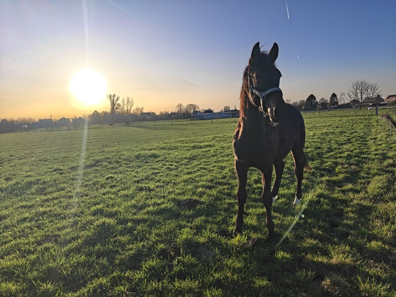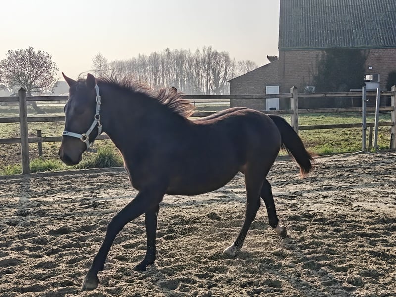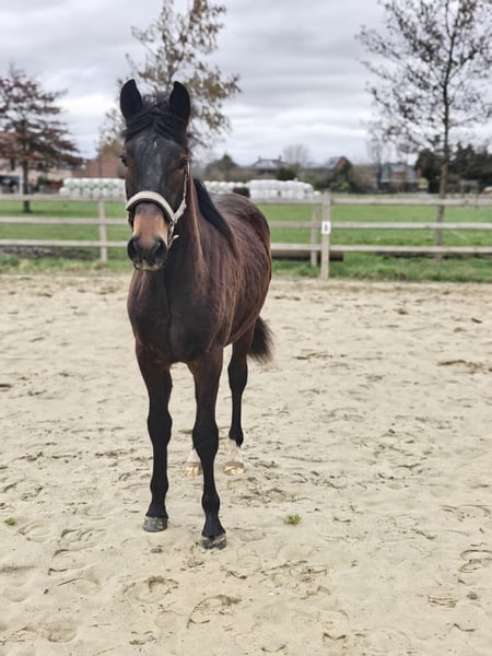 Ghost van de Heihoeve – New Forest hengst Geboren: 11 maart 2025 Moeder: Joly's Dajana Vader: Riddersholm Salem Met pijn in het hart zijn wij op zoek naar een nieuwe thuis voor ons veelbelovende hengstveulen Ghost van de Heihoeve. Ghost is een prachtig gebouwd veulen met sterke bewegingen en een nieuwsgierig, vriendelijk karakter. Hij heeft alles in zich om uit te groeien tot een pony met veel toekomstmogelijkheden — zowel in de fokkerij als in de sport. Zijn afstamming is uitstekend: Moeder Joly's Dajana bracht al meerdere toppony’s voort, die zich niet alleen bewijzen in de sport, maar ook stuk voor stuk kindvriendelijk zijn. Vader Riddersholm Salem is een opvallend mooie hengst met een zacht karakter — eigenschappen die wij erg waarderen in onze New Forest fokkerij. Ghost is al vertrouwd met het halster, wassen en verzorgen. Hij heeft zijn eerste kennismaking met de hoefsmid goed doorstaan en liet zich vlot behandelen. Wij zoeken voor Ghost een vijfsterrenhuisje waar hij alle kansen krijgt om verder op te groeien. Hij moet niet weg, maar een warme thuis en een mooie toekomst zijn voor ons het allerbelangrijkste. Extra foto's en video's verkrijgbaar. Interesse of vragen? Neem gerust contact met ons op voor meer info.