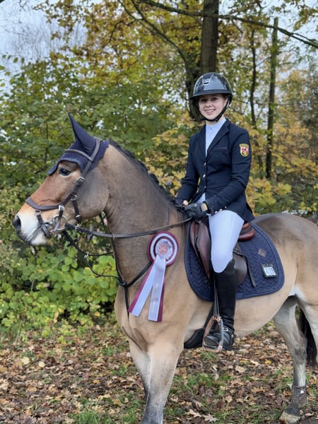 Sportliches doppeltveranlagtes Pony Name: Subliem’s Monaco Rasse: New Forest Pony Stockmaß: 146 cm Nach einer erfolgreichen Turniersaison und dem Ende der Ponyzeit, verkaufen wir schweren Herzens das Pony unserer Tochter. Er ist ein doppeltveranlagtes Pony, in dieser Saison siegreich in L-Springen und L-Dressur, also auch für die Vielseitigkeit interessant. In der Vergangenheit hat er auch an Geländetraining teilgenommen. Charakter & Eignung: • Absolutes Sportpony mit viel Talent und Ausdruck • Kein Anfängerpony – benötigt eine konsequente, erfahrene Hand • Im Umgang zuverlässig, keine Unarten (kein Beißen, Bocken oder Steigen) • Aktuell vorne beschlagen (wegen Rasenprüfungen). Ansonsten über die gesamten Jahre bei uns barfuß gelaufen • Im Umgang mit anderen Pferden ist er rangniedrig und verspielt Besondere Erfolge: • 2023 & 2024 im Landeskader Rheinland-Pfalz • 3. Platz Landesmeisterschaften 2023 • 3. Platz Landesmeisterschaften 2024 Er wird mit Zubehör verkauft (Springsattel von CWD & Trense) 👉 Ein Pony zum Verlieben – ideal für ambitionierte Reiterinnen und Reiter, die sportlich durchstarten möchten. Bei ernsthaftem Interesse freuen wir uns über Ihre Kontaktaufnahme.