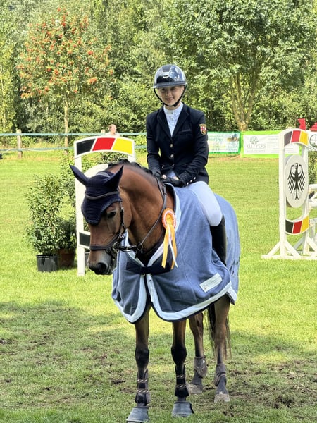 Sporty dual-purpose pony Name: Subliem’s Monaco Breed: New Forest Pony Height: 146 cm After a successful competition season and the end of our daughter's pony time, we are reluctantly selling her pony. He is a dual-purpose pony, victorious in L-level show jumping and L-level dressage this season, making him also interesting for eventing. In the past, he has also participated in cross-country training. Character & Suitability: • Absolute sport pony with a lot of talent and expression • Not a beginner's pony – requires a consistent, experienced hand • Reliable in handling, no bad habits (no biting, bucking, or rearing) • Currently shod in front (due to grass competitions). Otherwise, he has been barefoot throughout the years with us • In interactions with other horses, he is low-ranking and playful Special Achievements: • 2023 & 2024 in the state squad of Rhineland-Palatinate • 3rd place at the state championships 2023 • 3rd place at the state championships 2024 He will be sold with equipment (jumping saddle from CWD & bridle) 👉 A pony to fall in love with – ideal for ambitious riders who want to make a sporty start. For serious inquiries, we look forward to your contact.