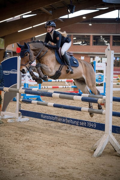 Pony deportivo con doble aptitud Nombre: Subliem’s Monaco Raza: Pony New Forest Altura: 146 cm Tras una exitosa temporada de concursos y el fin de la etapa de pony, vendemos con pesar el pony de nuestra hija. Es un pony con doble aptitud, ganador en saltos de clase L y en doma de clase L esta temporada, por lo que también es interesante para la modalidad de concurso completo. En el pasado, también ha participado en entrenamientos de campo. Carácter y aptitudes: • Un pony deportivo con mucho talento y expresividad • No es un pony para principiantes – requiere una mano firme y experimentada • Confiable en el manejo, sin malos hábitos (no muerde, no se encabrita ni se para de manos) • Actualmente lleva herraduras en las patas delanteras (por pruebas en césped). Por lo general, ha estado sin herraduras durante todos los años con nosotros. • En el manejo con otros caballos, es de rango bajo y juguetón Logros destacados: • 2023 y 2024 en el equipo regional de Renania-Palatinado • 3º lugar en las campeonatos regionales 2023 • 3º lugar en las campeonatos regionales 2024 Se vende con accesorios (sillín de salto de CWD y brida) 👉 Un pony para enamorarse, ideal para jinetes y amazonas ambiciosos que quieren comenzar en el deporte de manera deportiva. Si está interesado en serio, estaremos encantados de recibir su contacto.