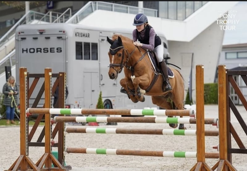 Da meine Pony Zeit dieses Jahr endet, verkaufe ich mein Pony Orchid‘s Raimond. Er ist 2022 zu uns gekommen und ich bin mit ihm von E bis M Springen geritten. Er kämpft immer für seinen Reiter ihm Parcours und ist perfekt für Stil und Zeitspringen. ,,Fire’‘ möchte immer Null gehen und hilft seinem Reiter auch mal wenn es nicht perfekt passt! Er ist wendig und Grundschnell und hat zahlreiche Platzierungen von E bis M springen Zum Beispiel; • Gewinner CWD Kids Cup 2023 ( A** mit Stechen) •Gewinner der Gesamtwertung von der Pony-Trophy Tour 2024 ( Im Finale Platz 3 im 115cm mit Stechen) • Kreismeister 2022 ,2023 ,2025 ! • Gewinner beim Turnier der Sieger in Münster (110cm mit Stechen) • Internationaler Sieg im 110cm in Hagen + weitere internationale Platzierungen • Internationale Platzierung im 115cm in Peelbergen • 2. Platz im 120cm beim Ponyturnier in Xanten Er ist ein richtiger Schleifen Sammler und man kann sich immer auf ihn verlassen! Er wird nur in allerbeste Hände verkauft! Bei Interesse oder für weitere Informationen stehe ich gerne zur Verfügung. Besichtigung und Probereiten nach Vereinbarung möglich. Telefonnummer : 0173 8736775