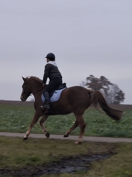 For personal reasons, we are looking for a new home for our Endurance Pony Gelding. Gamble is a 1.51 m tall, chestnut-colored New Forest Pony with a Dutch passport, born in June 2010. He is currently in full training and is being worked in a versatile manner. He has attractive basic gaits and is at dressage level A. With appropriate riding skills, turns on the forehand and lateral movements are no problem, and he can also perform flying changes. He particularly enjoys pole work and gymnastics exercises. He easily jumps small courses and also helps his rider when approaching obstacles slightly off-route. He loves long rides and walks and is a motivated and calm partner in the terrain, even alone. During ground work, he is attentive and learns quickly. Equikinetic and Tensegrity training are also part of our daily routine and are well received. He has always been well-behaved with the veterinarian and farrier. Currently, he is barefoot, but he has also been shod with regular shoes before. At the moment, he lives in a paddock box with turnout/pasture during the day. He has also lived in an open stable and adapts well to both housing systems. Ideally, he should be kept with geldings as paddock or pasture companions, as he tends to get along too well with mares. For an ambitious leisure rider, Gamble is a wonderful partner, but he needs clear leadership and is therefore not suitable as a beginner pony or for riding schools. A recently fitted jumping and dressage saddle, along with all other tack, can be included for an appropriate additional fee, so the new owner can start riding immediately. I am happy to answer friendly inquiries with a brief description of your situation (housing, riding experience, etc.). We are looking for a nice, suitable home for our pony. The price is negotiable.