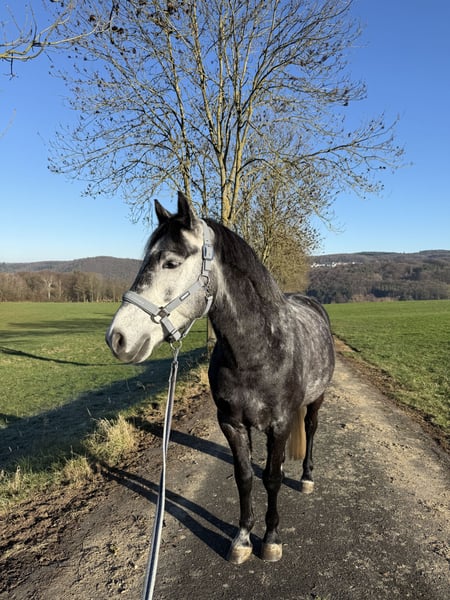 Zum Verkauf steht unser New Forest Pony Teddy, ein 2020 (April) geborener Schimmelwallach mit einem eingesessenen Stockmaß von 1,48 m. Er überzeugt vor allem durch seinen angenehmen Charakter und seine Vielseitigkeit. Teddy stammt von Hamlet’s Magnum XL ab, Muttervater ist Priory Prickle. Unter dem Sattel zeigt sich Teddy stets motiviert und zuverlässig. Aktuell wird er dressurmäßig auf E-Niveau gearbeitet. Teddy ist sehr menschenbezogen, freundlich und neugierig. Er geht brav mit, ist kinderlieb und macht im täglichen Umgang keinerlei Probleme. Auch neue Situationen meistert er ruhig und gelassen. Im Stallalltag ist er unkompliziert, schmiede- und verladefromm und insgesamt ein sehr liebevolles Pony. Ein guter TÜV (Mai 2025) inklusive Röntgenbildern liegt vor. Ein Pony, das sich sowohl für Freizeit als auch für eine weiterführende Ausbildung sehr gut eignet.