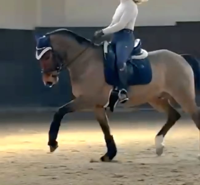 For sale: an 8-year-old pony gelding with competition experience in dressage up to class L. Standing at 1.47 meters, he is very well suited for a mother/daughter team and covers very well. He is also highly recommended for advanced recreational riding. Please contact only via phone or WhatsApp.