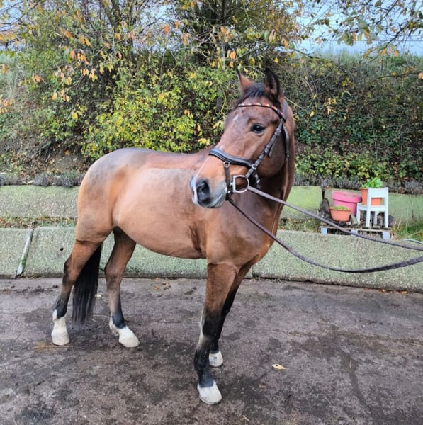 On behalf of acquaintances, for sale. Stylish 8-year-old gelding with competition experience in dressage and show jumping. The pony is well-trained but not suitable for beginners. He is sold exclusively for high-level leisure riding, as his nerves are not strong enough for competitive sport.!!! With an approximate height of 15.1 hh, he fits very well. He also jumps complete courses. He is highly recommended for advanced recreational riding. Please no inquiries from competitive riders! Contact via phone or WhatsApp at 01735858104.