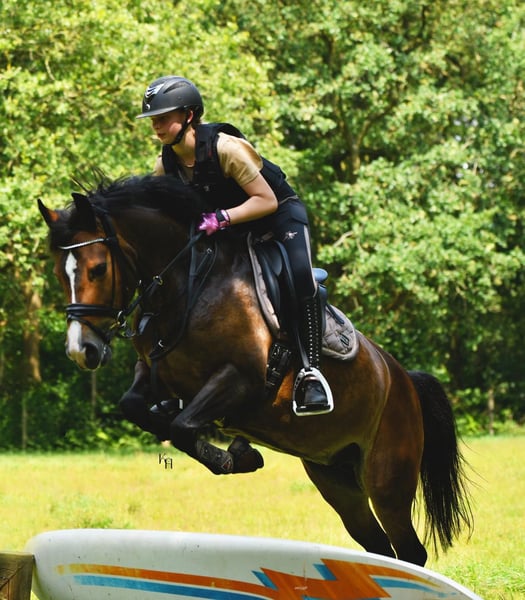 Außergewöhnlich liebevolle 10-jährige D-Pony-Stute mit 144 cm sucht eine zuverlässige Reiterin oder Reiter, die ihr ein warmes und dauerhaftes Zuhause bieten kann. Dieses Pony ist ein echtes Schatz in der Umgangsweise. Im Stall ist sie ruhig, freundlich und liebt Aufmerksamkeit. Putzen, auftrensen und der Umgang mit ihr sind problemlos; sie steht am liebsten dicht bei dir für eine Umarmung. Unter dem Sattel arbeitet sie derzeit im L-Dressur und B-Springen. Besonders das Springen macht ihr viel Freude und Begeisterung. Auch das Ausreiten im Gelände genießt sie sehr, im Wald ist sie brav und zuverlässig. Das Verladen in den Hänger ist kein Problem. Sie fährt gerne mit, egal ob ans Meer, zu Turnieren oder für eine Ausfahrt in den Veluwe – sie steigt immer fröhlich ein. Aufgrund ihrer guten Abstammung ist diese Stute nicht nur als Reitpony ideal, sondern auch für die Zucht geeignet. Abstammung: Mabeline’s Delano x Burley Phantom, aus der Oosterbroek-Linie. Diese Pony ist ehrlich, arbeitswillig und hat ein liebenswertes Wesen. Sie eignet sich für einen Reiter, der auf der Suche nach einem zuverlässigen Allround-Pony mit einem goldenen Herzen ist.