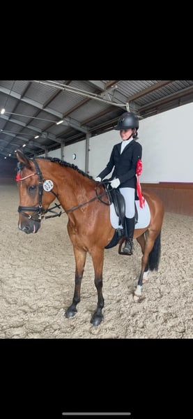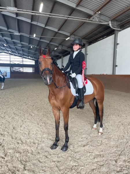 Donja was imported from the Netherlands and comes from an excellent lineage. She is registered as a New Forest Pony and is a descendant of Holthausen Frodo II. Over the past two years, she has been ridden by a 13-year-old girl, with whom she has achieved great success at dressage competitions in the Czech Republic. Donja is excellent at teaching a child how to present a dressage test properly. She is very focused within the arena, maintains a consistent contact, has an unshakable rhythm, and almost performs the exercises on her own. Throughout both competition seasons, she has never finished outside the top placements. She has mostly competed in A-Dressage classes but also masters extended trot, simple flying changes, and leg-yield. In handling, Donja is very straightforward and affectionate. She has always been well cared for and regularly attended to by vets, physiotherapists, and farriers. We have several other interesting horses listed. If you are looking for something different, please feel free to contact us. Want to see if our work convinces you? Visit our Facebook page, where you can also find reviews from our international clients.