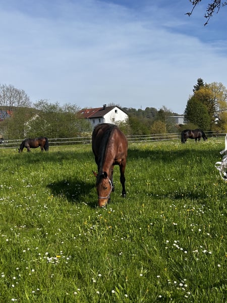 This sweet pony mare is characterized by her very friendly and tolerant nature towards other horses, making her an ideal companion. She is very well-behaved in handling and is also very gentle with children. Unfortunately, she is only limited riding suitable. Feel free to send a message for more details :)