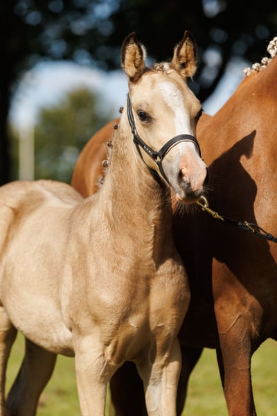 Merrieveulen van Juni 2025, kleur valk. Vader is de Duitse Rijpony hengst Golden Daim F. Moeder is een New Forest Stermerrie van Jacodi's Bo's Barclay. Oma Kroon Preferent van Jasper en Overgrootoma Stermerrie van Mondays Moscan. Moeder is 1.44 hoog, vader 1.46. Moeder vrij getest op Myotonie, PSSM1 en WFFS. Vixey kreeg een 1e premie op de late veulenkeuring en werd NFX veulenkampioen. Vixey is ingeschreven in het NFX van het New Forest Pony stamboek.