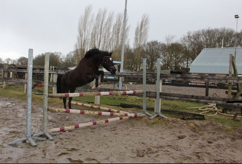 Hungario's Felice ( roepnaam Fee) is een prachtige, 7 jarige New Forest merrie. Het stamboek vindt haar erg correct en daarom heeft ze het predicaat STER gekregen. Klik HIER voor haar verrichtingsonderzoek en HIER voor haar papier. Ze is ca 138 m hoog en qua maat ook geschikt voor een niet ál te grote volwassene. Ze heeft even een tussenstation gehad voor een kind van 3... Buiten het feit dat dit wel heel erg jong is geven wij graag aan dat kinderen en pony's altijd begeleidt moeten worden, zeker in het begin. Als je bij Fee in het midden van de bak begeleidt gaat het hier en voorheen prima. Ze is tot nog toe buiten erg fijn en dat doet ze ook het liefste. Het vorige baasje wil graag contact hebben met de nieuwe eigenaar. Ze schrijft :" Fee is een echte tut pony en houd van uren poetsen, Erg braaf bij een zekere ruiter. Braaf in het bos en kijkt van niks op. Gaat makkelijk de trailer op Meerdere keren mee op oefenwedstrijd geweest en ook dat doet ze super braaf. Springen vind ze erg leuk. Ze is eigenlijk super nuchter. Incl. zadel en hoofdstel compleet 5750,-
